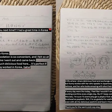 A microwave oven and a refrigerator are provided at a fully equipped kitchen. The restaurant Think Boda Delicious House is located about 5 minutes on foot from the 42 m² Soonsim Stay apartment. The accommodation is only 250 metres from Lotte Department Store Gwanak Branch bus stop and a short distance from Sillim underground station.